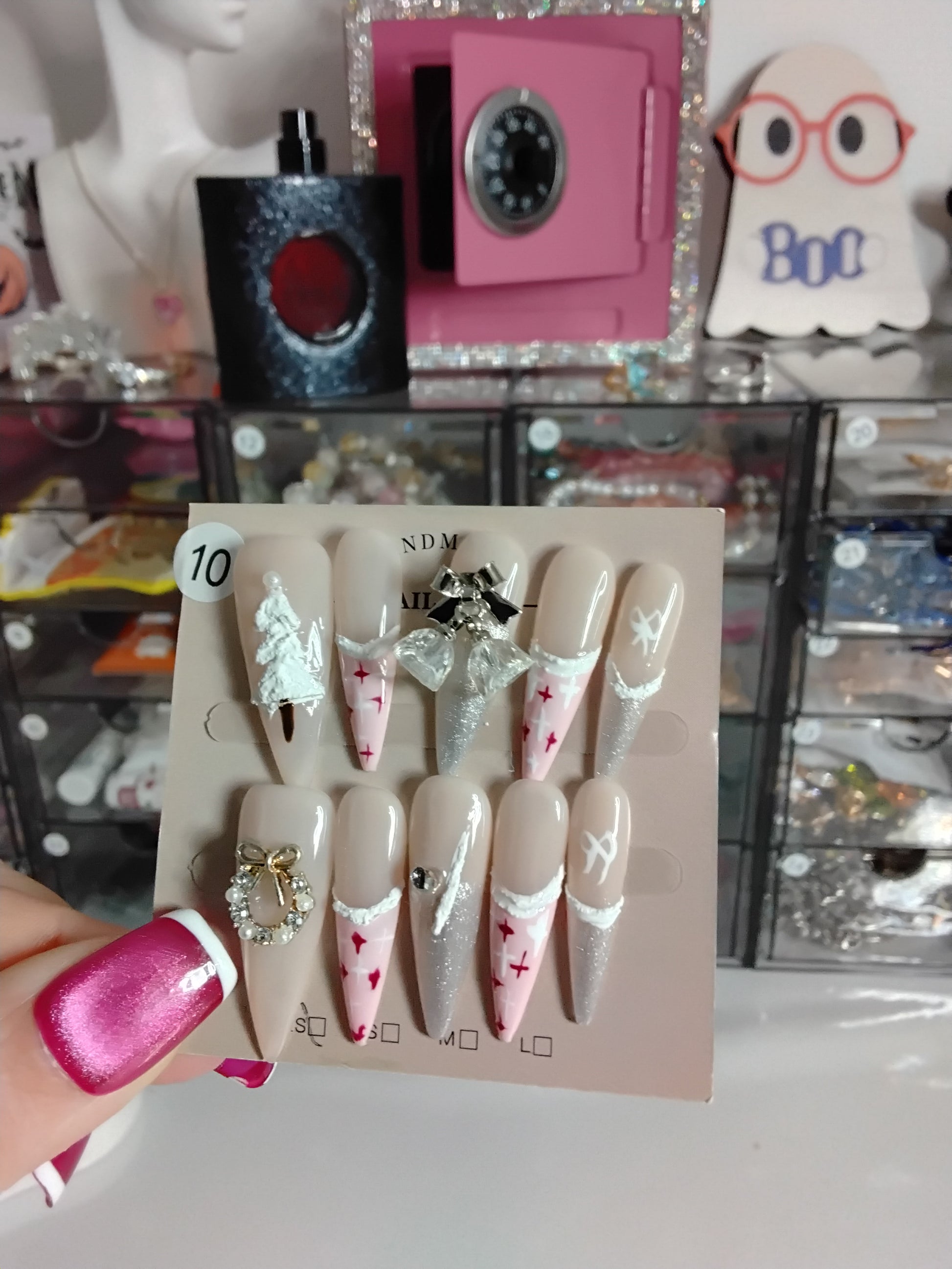 CHRISTMAS HANDMNDE NAILS-LUXURY STYLE-WITH RANDOM CUTIES
