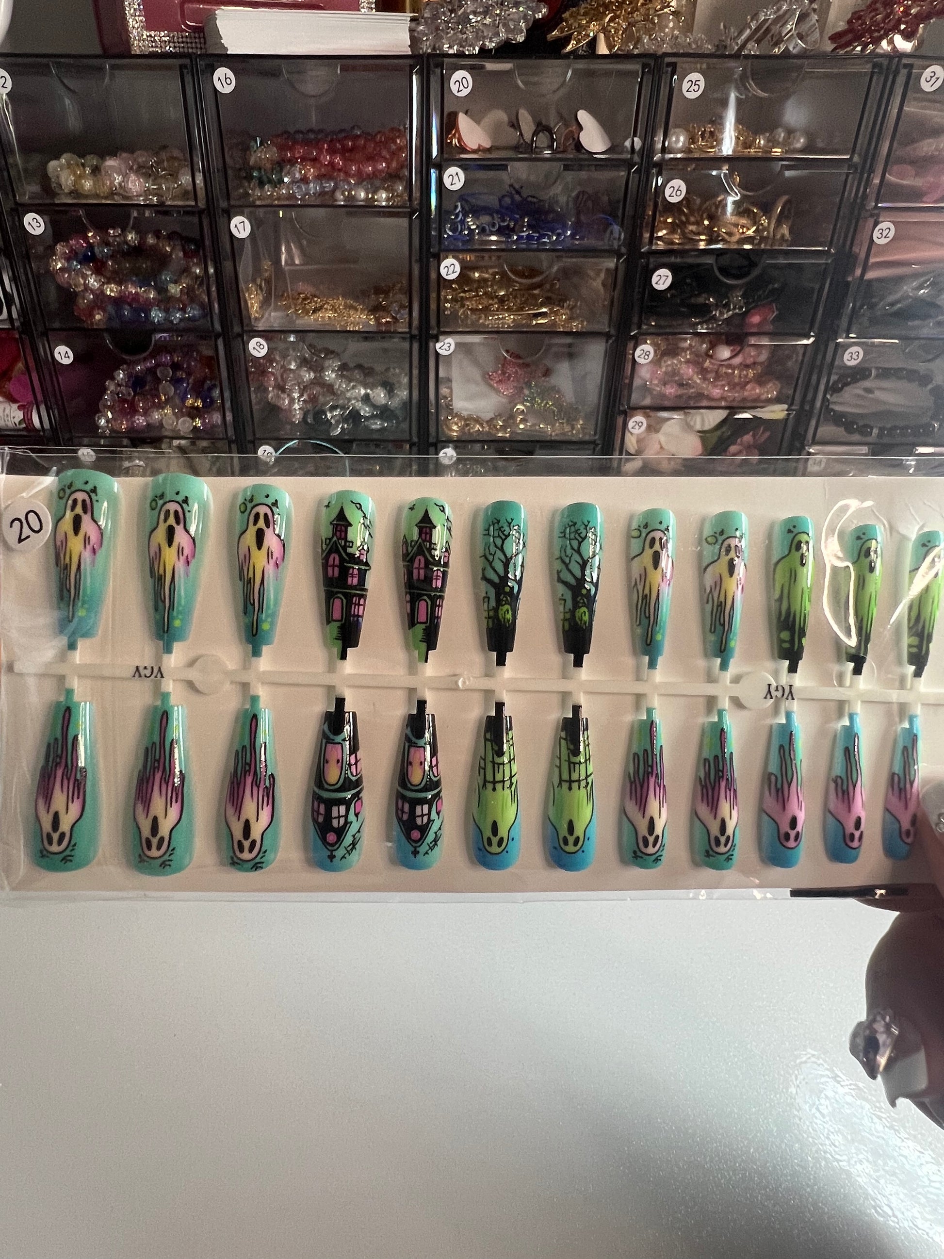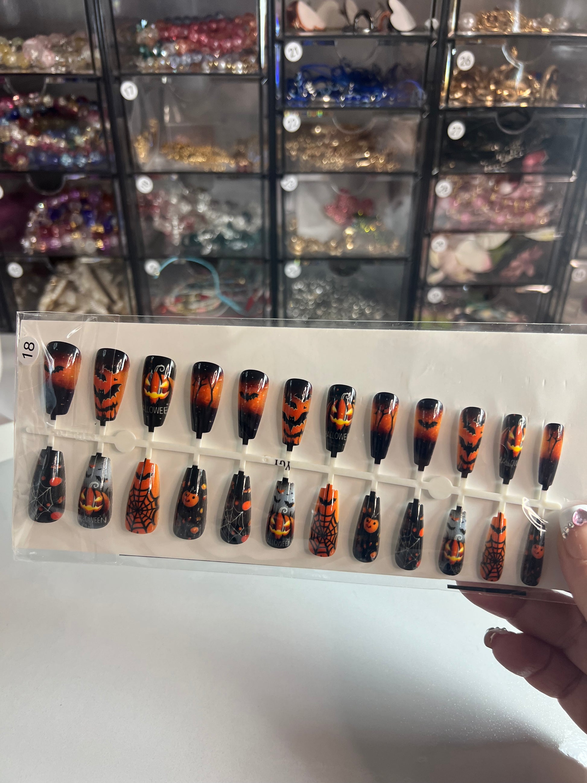 Trick or treat your nails with boxed nails and fun accessories)! Choose from spooky, sparkly, or silly Halloween designs-numbered so you can claim your favorite.